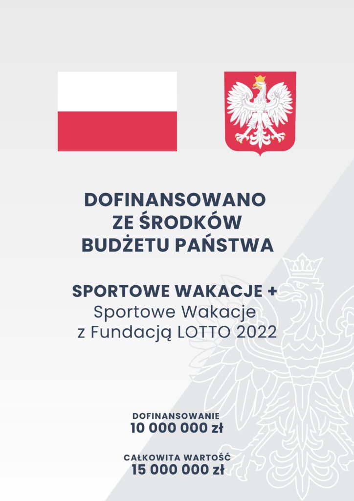 Obóz Bydgoszcz 2022 współfinansowany w ramach Programu „Sportowe Wakacje z Fundacją LOTTO 2022” ze środków Fundacji LOTTO im. Haliny Konopackiej oraz Ministerstwa Sportu i Turystyki.
